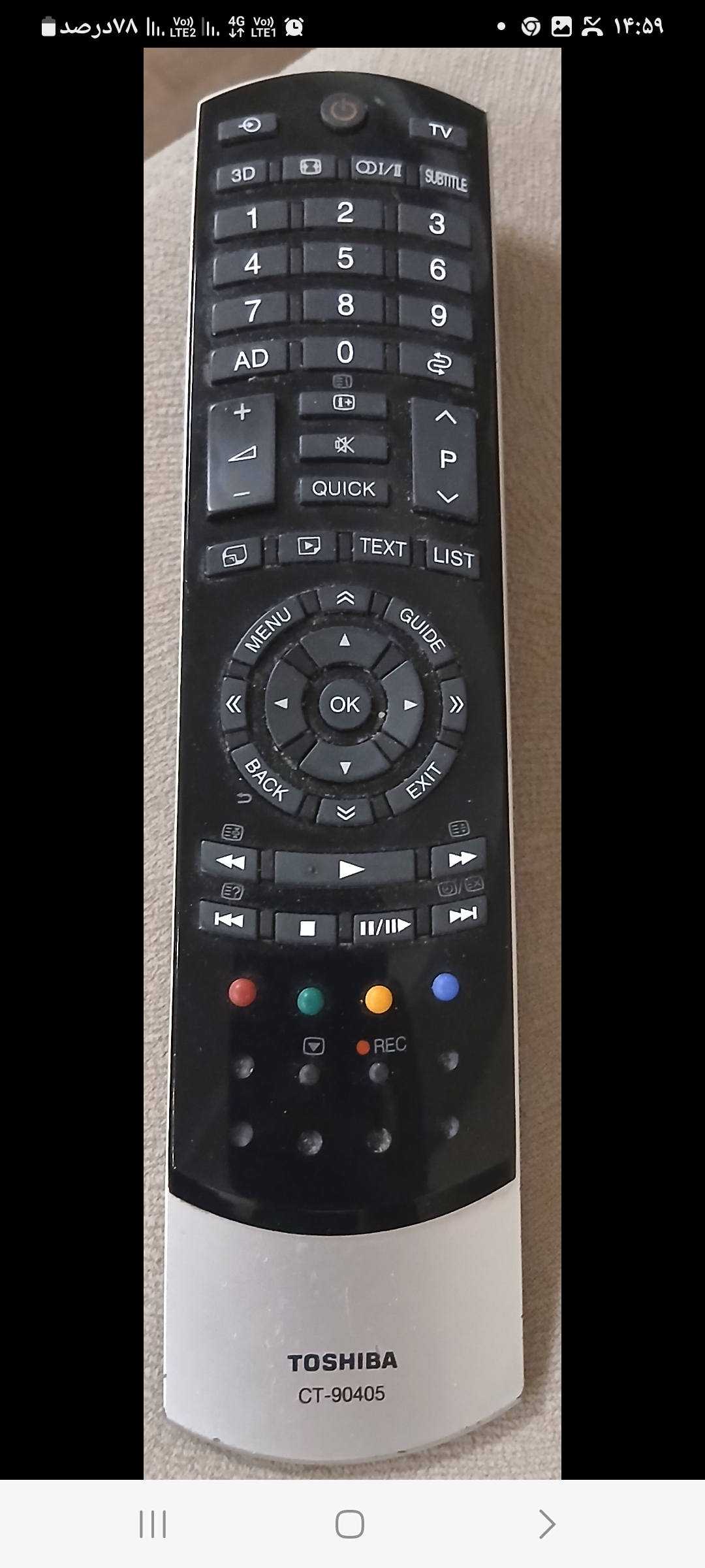 کنترل جایگزین تلویزیون توشیبا مدل CT-۹۰۴۰۵ بادوام شرکتی ( لطفا توضیحات و تمام عکسهای اگهی بازدید شود)