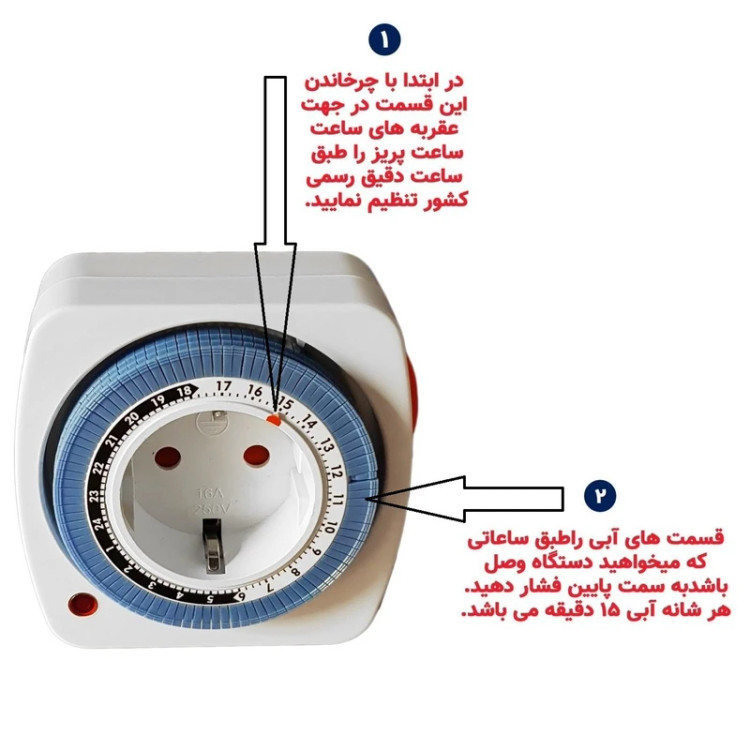 دارای چراغ سیگنال، قابلیت قطع و وصل از ۱۵ دقیقه تا ۲۴ ساعت، دارای ۹۶ پین جهت برنامه ریزی، قابلیت انتخاب وضعیت دائم کار یا تایمری، ساخت ایران