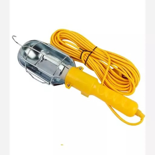 وجود نور کافی در هنگام تعمیرات و انجام کارهای فنی اهمیت زیادی دارد. یکی از راههای تامین نور در چنین شرایطی که دسترسی به نور طبیعی امکانپذیر یا کافی نیست، استفاده از چراغهای سیار است. محصول فوق یکی از نمونههای این چراغها بوده که به دلیل ویژگیهای متعددش، کاربردهای فراوانی دارد. این چراغ سیار دارای کابل برقی 10متری است. این طول کابل موجب میشود تا بتوانید چراغ را به فاصلهای دورتر از پریز برق منتقل کرده و روشنایی موردنیاز خود را تامین کنید. برای استفاده از این محصول باید یک لامپ با پایهی E27 درون آن قرار دهید. وجود یک صفحهی فلزی در قسمت پشتی لامپ موجب میشود تا نور آن بهشکل متمرکزتری روی سطح موردنظر تابیده شود. در اطراف لامپ نیز میلههای فلزی محافظی وجود دارد تا احتمال برخورد لامپ با سطوح دیگر کاهش یابد. بهمنظور روشن و خاموشکردن لامپ درون چراغ، یک کلید در قسمت بالایی دسته طراحی شده است. این چراغ را میتوانید در دست بگیرید یا با آویزانکردنش، از نور آن استفاده کنید.