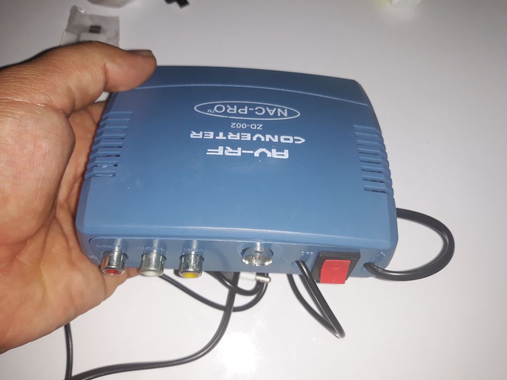 دارای یک خروجی فیش سه تایی سه رنگ AV یا RCA دارای یک پورت ورودی فیش RF - فیش آنتن یک سیم خروجی RF سیم برق ورودی برق 220 ولت شهری دارای کلید خاموش و روشن دستگاه بدون نویز و ارائه بهترین تصویر ممکن