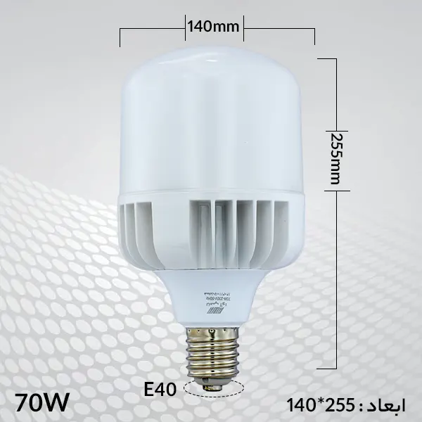 - پایه لامپ ال ای دی 70 وات آوا از نوع بزرگ یا E40 میباشد. این لامپ برای نصب روی سرپیچهای E40 مناسب است.