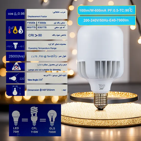 - محدوده دمای کارکرد این لامپ LED، بین 40+ و 10- درجه سانتی گراد میباشد.