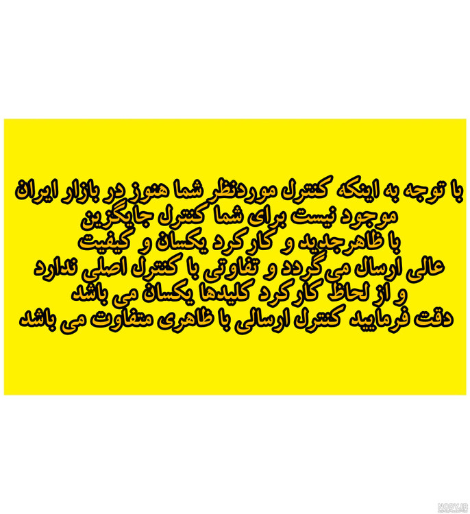 این محصول بعلت متفرقه بودن در بازار نیست و تولید نمیگردد ولی کنترل جایگزین با شکل متفاوت وکارکرد یکسان ارسال میگردد توجه فرمایید کنترل ارسالی با شکل متفاوت می باشد